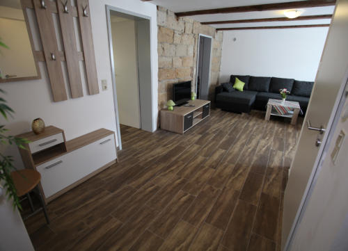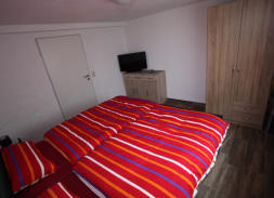 Unser im Erdgeschoss gelegene Ferienwohnung 1 verfügt auf 58m² über - ein Wohnzimmer mit: - einer Couch mit Schlaffunktion - ein Sessel mit Schlaffunktion - Flatscreen mit Sat-TV - SMART-Blueray-Player - ein Schlafzimmer mit: - KingSize-Bett ( 180x200 ) - Flatscreen mit Sat-TV - weichere Austauschkissen - Kommode und Kleiderschrank - Bettwäsche - Babybett optional - Safe - eine Küche mit: - Radio - Sitzecke - Küchenzeile mit Cerankochfeld, Backofen, Kühlschrank mit Tiefkühlfach - Mikrowelle, Minibackofen, Taster, Kaffeemaschineund vielem mehr - Kinderhochstuhl - ein Bad mit: - Dusche -WC -Fön - elektrischer Handtuchtrockner - Duschhocker - Pflegeprodukte - Toilettenpapier - Handtücher Internetanschluss per W-Lan kostenlos