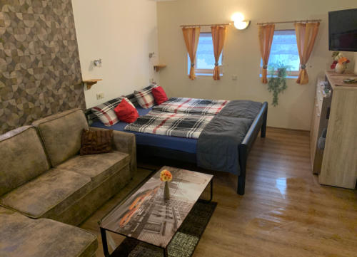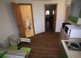 Unsere im 1. Stock gelegene Ferienwohnung 3 verfügt auf 32m² über 2 Zimmer, welche sich wie folgt aufteilen: - ein Schlafzimmer mit - King-Size-Bett (180 x 200 ) - Kleiderschrank - Kommode - Flatscreen mit Sat-TV - Couch mit Tisch - Standventilator mit Fernbedienung - weichere Austauschkopfkissen - eine Küche mit - Radio - Sitzecke - Küchenzeile mit 2 Kochfeldern, - Kühlschrank mit Tiefkühlfach - Mikrowelle, Minibackofen, Toaster, - Eierkocher, Wasserkocher, - Filterkaffeemaschine, - Geschirr - Geschirrhandtücher, Küchenrolle - und vieles mehr - ein Bad mit - Dusche und WC, - Fön - Pflegeprodukte - Toilettenpapier - Handtücher - Internetanschluss per W-LAN kostenlos - Nichtraucherwohnung - Bettwäsche, - Safe